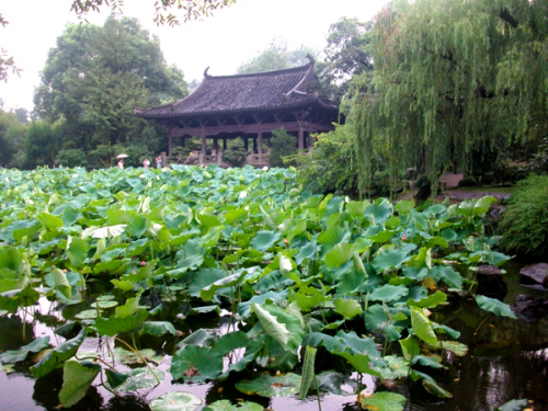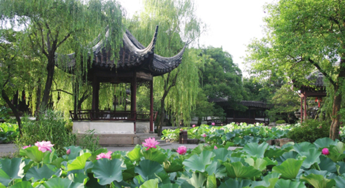位于苏州拙政园中部的“远香堂”,建于原若墅堂的旧址上。堂北平台宽敞,池水旷朗清澈。夏日池中荷叶田田,荷风扑面,清香远送。堂名便是取自周敦颐的这篇《爱莲说》。