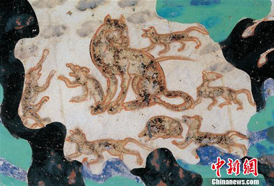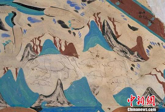 图为莫高窟第249窟中的壁画“野猪群”(西魏)。敦煌研究院供图