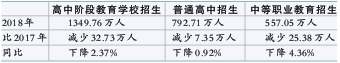 学校减少近300所,在校生和招生人数均减少30余万——高中阶段教育:各指标多为下降
