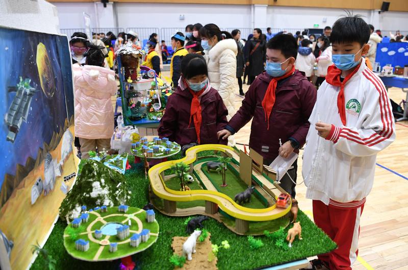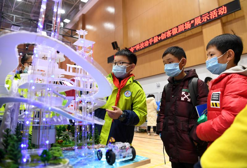 当日,安徽省合肥市蜀山区举办2020年“科技动手做+创客微剧场”展示活动,55件中小学学生作品参加现场演示,展现孩子们眼中的未来“智能城市”。