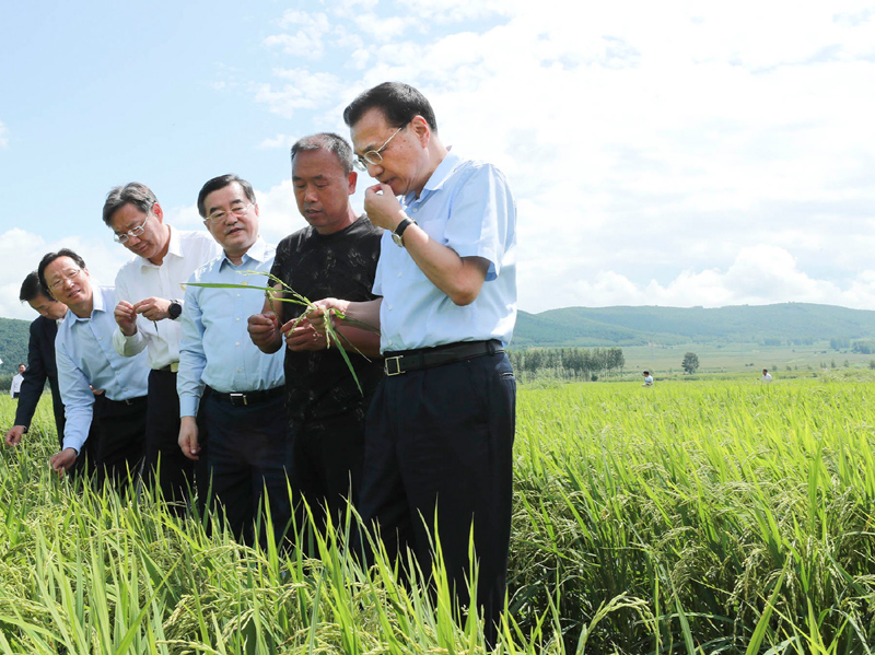 黑龙江是我国重要商品粮基地。李克强走进牡丹江市南拉古村稻田里,俯身察看庄稼长势,详细了解粮食价格、种粮收入、用工成本变化等。乡亲们告诉总理,这里大米行销全国,今年预计再获丰收。李克强说,过去是南粮北运,现在有北粮南运。种大米有大学问,你们不仅要把品牌叫响,更要把质量提高。粮食稳天下安。东北条件好,要破除制约,提高适度规模经营水平,推广使用大型农业机具,加快农业现代化。