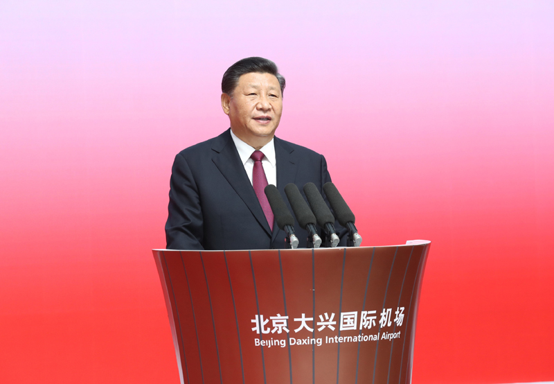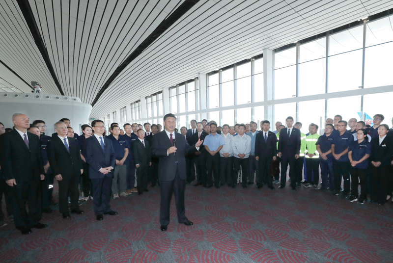 9月25日上午,北京大兴国际机场投运仪式在北京举行。中共中央总书记、国家主席、中央军委主席习近平出席仪式,宣布机场正式投运并巡览航站楼。新华社记者 鞠鹏 摄