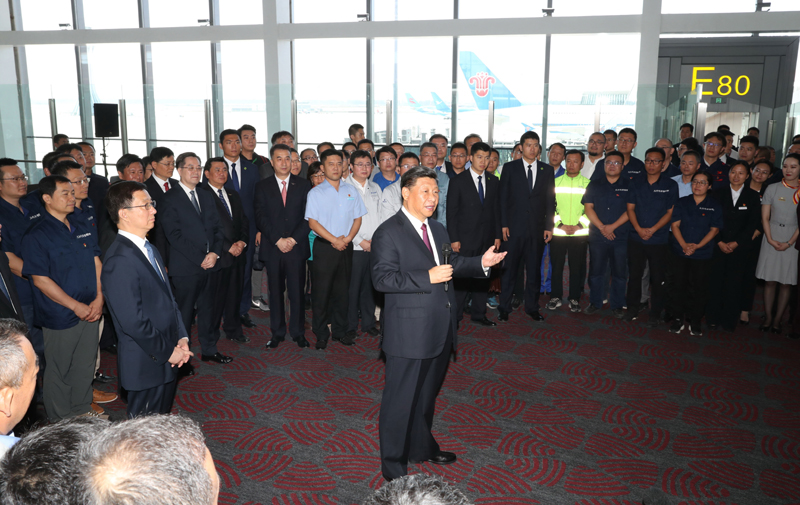 值机柜台前,习近平察看智能技术、全自助无纸化智慧值机的流程,对机场采用现代化设施为旅客提供便利服务的做法表示肯定。他强调,既要高质量建设大兴国际机场,更要高水平运营大兴国际机场。要把大兴国际机场打造成为国际一流的平安机场、绿色机场、智慧机场、人文机场,打造世界级航空枢纽,向世界展示中国人民的智慧和力量,展示中国开放包容和平合作的博大胸怀。