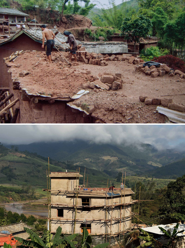 拼版照片:上图为云南省墨江县那哈乡那哈村的哈尼族群众在修缮房屋(墨江县提供,2009年8月19日摄);下图为墨江县新安镇莫约村村民在建盖新房(新华社记者蔺以光2017年1月12日摄)。新华社发