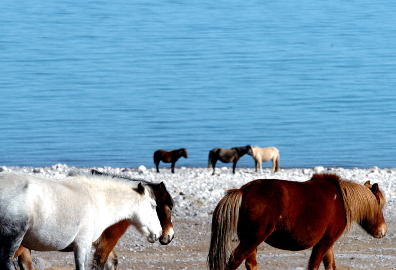 一群马在青海湖畔活动(2006年11月18日摄)。新华社记者 侯德强 摄