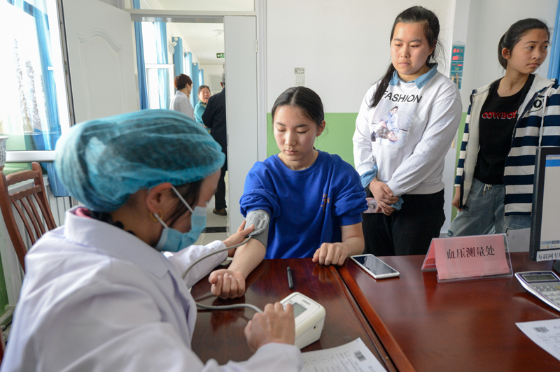 在新疆霍尔果斯市莫乎尔卫生院,辖区居民接受免费体检(2019年3月23日摄)。新华社记者 丁磊 摄