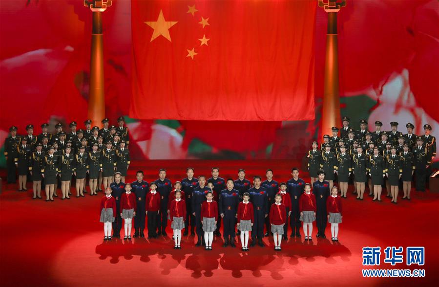 12名航天员代表与全场观众一起合唱《歌唱祖国》(1月15日摄)。