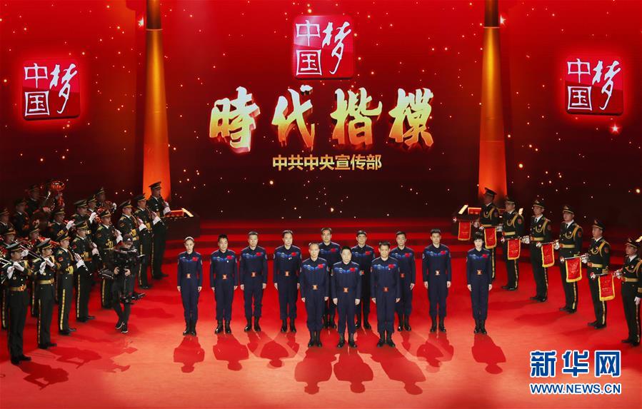 1月25日,中央宣传部向全社会公开发布航天员群体的先进事迹,授予他们“时代楷模”荣誉称号。 新华社发(王泗江 摄)