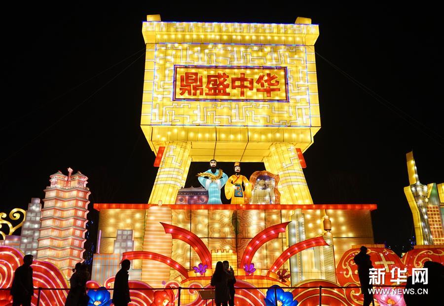 2月26日,参观者在郑州园博园观看一座大型组合花灯。当日,2018“老家灯会”开幕仪式在郑州园博园举行,为即将到来的元宵佳节增添浓浓的喜庆氛围。 新华社记者李安摄