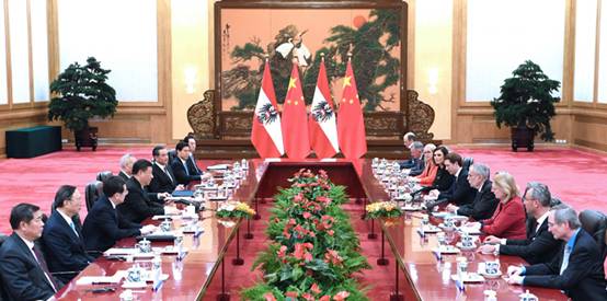 会谈后,双方发表了《中华人民共和国和奥地利共和国关于建立友好战略伙伴关系的联合声明》。两国元首共同见证了“一带一路”合作、司法、创新、交通、现代流通、文化、体育和知识产权等领域双边合作文件的签署。