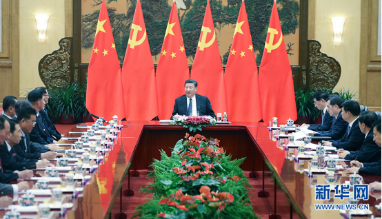 5月16日,中共中央总书记、国家主席习近平在北京会见由朝鲜劳动党中央政治局委员、中央副委员长朴泰成率领的朝鲜劳动党友好参观团。新华社记者 李学仁 摄
