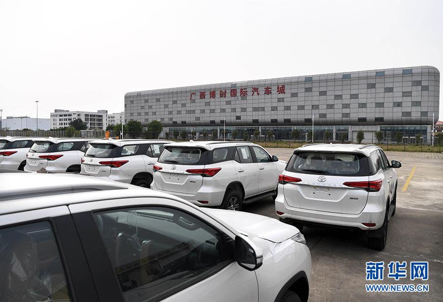 停放在广西钦州保税港区国际汽车城外的到岸进口整车(2017年4月13日摄)。新华社记者 申宏 摄