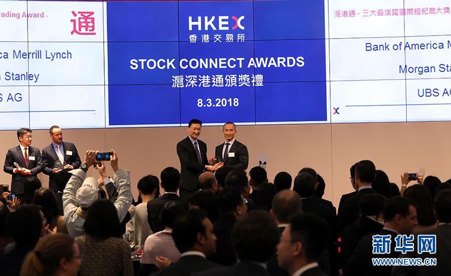香港交易所举办2017年度“沪深港通”颁奖礼,表扬主要经纪商于2017年参与“沪深港通”互联互通股票交易机制所取得的成绩(3月8日摄)。新华社记者 李鹏 摄
