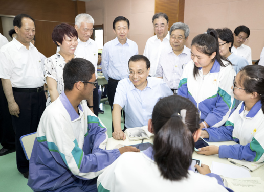 李克强来到闽宁中学,了解开展“互联网+教育”情况。“智慧教室”里学生们人手一个平板电脑,向总理展示上面集成的教育课件和彼此分享的学习心得。李克强说,教育是获取知识、促进起点公平的关键,“互联网+教育”可以让贫困地区孩子也能听到好老师的讲课,开拓他们的眼界,点燃改变人生的火把。目前农村信息基础设施落后,要加大政府投入,解决网速慢、资金不足等卡脖子问题。他还关切询问教师收入,叮嘱地方同志要做到义务教育教师平均工资不低于当地公务员平均工资水平。