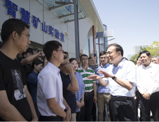 李克强来到iBi育成中心,这里聚集了近500家创业企业。智能矿山实验室负责人向总理介绍了他们运用互联网和自主研发的智能识别技术实现矿山远程安全开采,有效降低能耗和排放。李克强与在这里创业的归国留学人员、沿海返乡创客、自主择业的军转干部等交流,勉励他们通过智慧和劳动创造精彩人生。一家公司CEO告诉总理,六年前总理在走访贫困户时到过他父母家,当时他大学刚毕业待业在家,正是总理的鼓励和大众创业、万众创新政策使他走上了创业创富之路,现在他家已告别了低保。李克强高兴地说,我们要营造更好的创业创新环境,让更多有为青年充分发挥他们的聪明才智。
