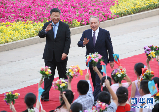 6月7日,国家主席习近平在北京人民大会堂同哈萨克斯坦总统纳扎尔巴耶夫举行会谈。这是会谈前,习近平在人民大会堂东门外广场为纳扎尔巴耶夫举行欢迎仪式。新华社记者 姚大伟 摄
