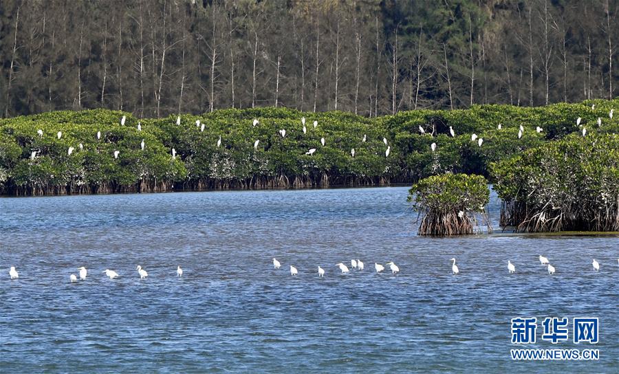 海南新盈红树林国家湿地公园一角(2018年1月26日摄)。这是全国第一个红树林国家湿地公园试点,海南新盈农场通过“退塘还林”、人工引种红树林、控制开发等方式,实施湿地保护,红树林得到有效恢复,生物多样性逐渐丰富。新华社记者 姜恩宇 摄