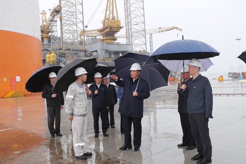 习近平冒雨考察海洋工程设备制造基地