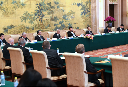国家主席习近平21日在钓鱼台国宾馆会见来华出席“全球首席执行官委员会”特别圆桌峰会的知名跨国企业负责人,并同他们座谈交流。