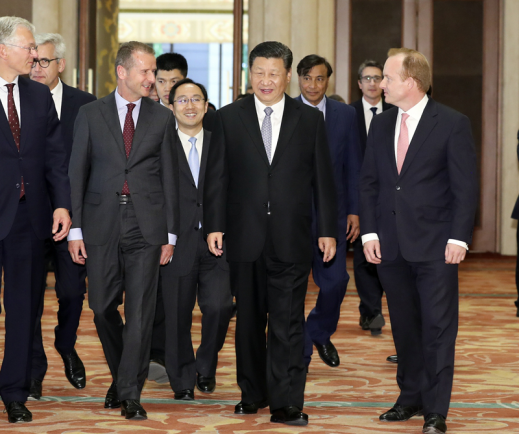 6月21日,国家主席习近平在北京钓鱼台国宾馆会见来华出席“全球首席执行官委员会”特别圆桌峰会的知名跨国企业负责人,并同他们座谈交流。新华社记者 丁林 摄