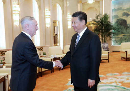 6月27日,国家主席习近平在北京人民大会堂会见来访的美国国防部长马蒂斯。新华社记者 李刚 摄