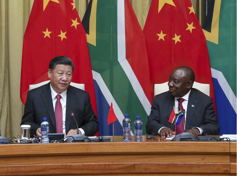 习近平强调,发展同非洲国家团结合作是中方长期、坚定的战略选择。再过一个多月,我和拉马福萨总统将共同主持召开中非合作论坛北京峰会。南非作为现任论坛非方共同主席国,为论坛机制建设和中非友好合作作出重要贡献。中方期待届时同论坛非方成员一道,共商新时期中非友好合作发展大计,携手打造更加紧密的中非命运共同体。