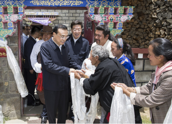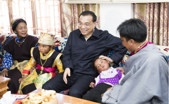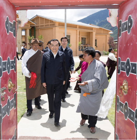 李克强总理7月25日到西藏自治区考察。首先来到林芝,一下飞机直奔米林县羌纳乡西嘎门巴村。这是一个移民村,村民由贫困地区搬迁而来。李克强走进村民贡桑家中,和他们一家6口坐在沙发上拉起家常。总理详细询问,家里主要收入来源是什么?一年挣多少?看病和孩子上学方便吗?现在还有什么困难?贡桑说,他家从交通不便的墨脱县搬迁到这里,如今靠务农、土地流转、旅游接待等,全家年收入达15万元,医疗和教育都有保障。全村共有72户,九成都达到他家这样的收入水平。李克强说,看到你们通过易地搬迁在高海拔地区也脱了贫,过上小康生活,我很高兴。祝你们生活更加富裕幸福,扎西德勒!