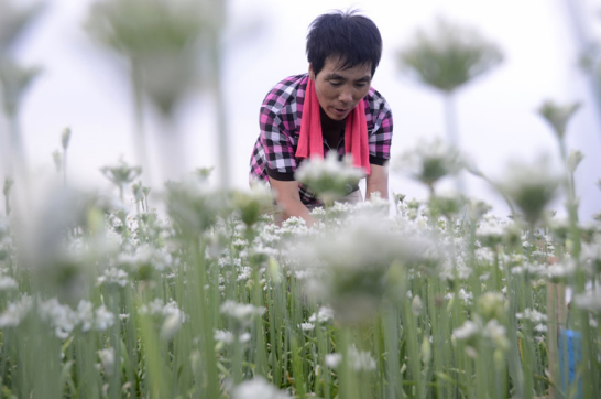 近日,山东省滨州市滨城区三河湖镇韭菜基地万亩韭花飘香,进入采摘季节。目前,该镇韭菜种植面积已达1万余亩,成为助推农民增收、振兴乡村的支柱产业。
