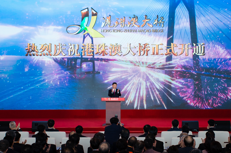 10时许,习近平走上主席台,宣布:“港珠澳大桥正式开通!”全场响起热烈掌声。