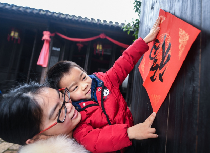 春节临近,浙江省湖州市织里镇义皋古村内灯笼高挂、“福”字盈门,呈现出一派浓郁的节日气氛。近年来,织里镇启动义皋古村历史文化村落保护工程,重新展现了村落内外的稻文化、鱼文化、溇港文化等历史文化景观。古村焕发新生,成为当地古村落保护和美丽乡村建设的典范。