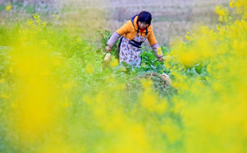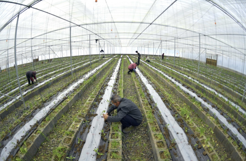 2月25日,在江西省吉安市永丰县,七都乡农民管理蔬菜。
