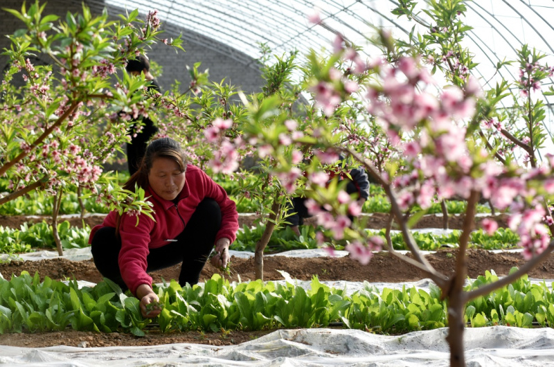 2月25日,河北省张家口市宣化区窑子头村农民在大棚中劳作。