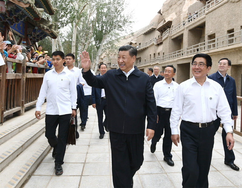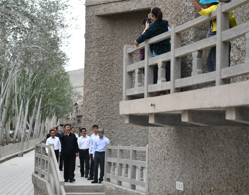 19日在甘肃省考察调研。当天下午,他来到全国重点文物保护单位敦煌莫高窟,实地考察文物保护和研究、弘扬优秀历史文化等情况。(文字:张晓松、朱基钗 摄影:鞠鹏、谢环驰)