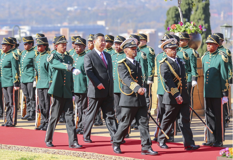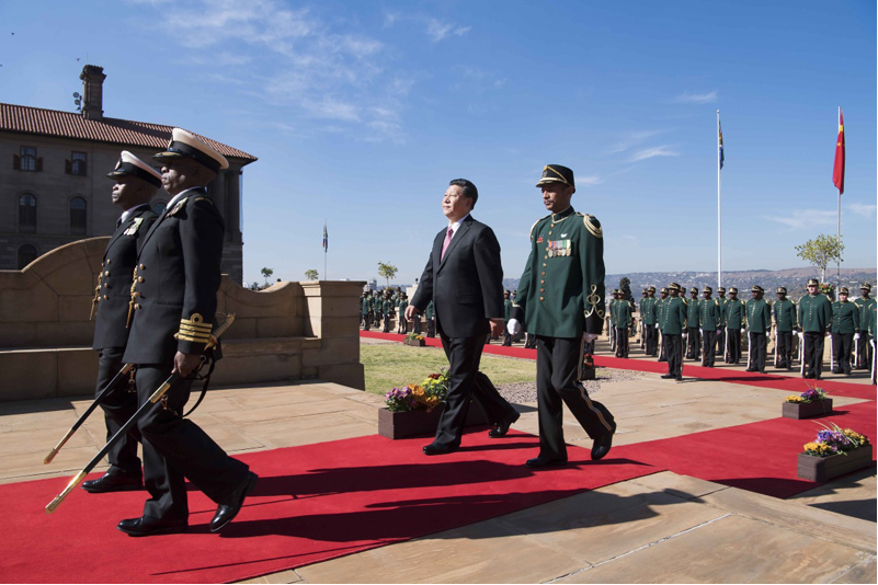 会谈前,拉马福萨为习近平举行隆重欢迎仪式。