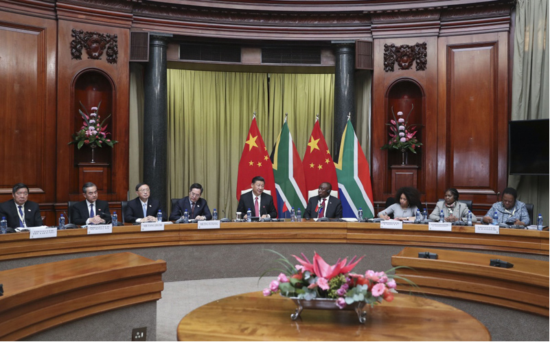 习近平强调,发展同非洲国家团结合作是中方长期、坚定的战略选择。再过一个多月,我和拉马福萨总统将共同主持召开中非合作论坛北京峰会。南非作为现任论坛非方共同主席国,为论坛机制建设和中非友好合作作出重要贡献。中方期待届时同论坛非方成员一道,共商新时期中非友好合作发展大计,携手打造更加紧密的中非命运共同体。