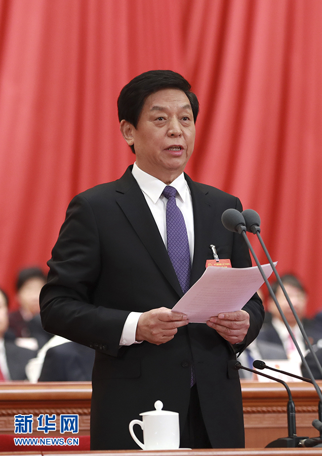 3月15日,第十三届全国人民代表大会第二次会议在北京人民大会堂举行闭幕会。大会主席团常务主席、执行主席栗战书主持并讲话。 新华社记者 庞兴雷 摄