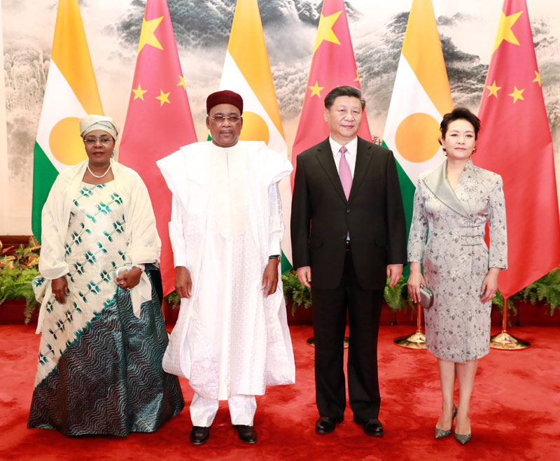 5月28日,国家主席习近平在北京人民大会堂同尼日尔总统伊素福举行会谈。这是习近平和夫人彭丽媛同伊素福夫妇合影。新华社记者 庞兴雷 摄