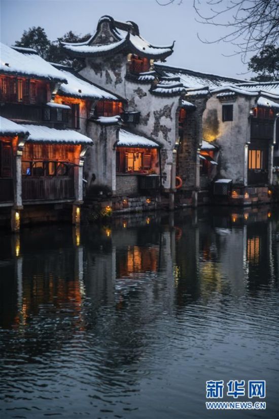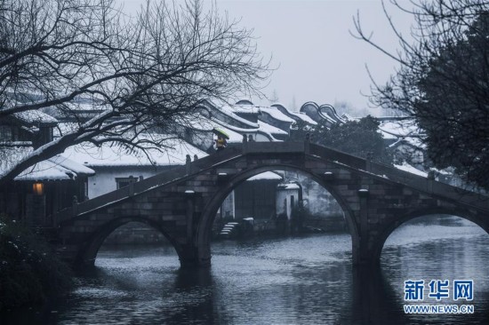 被白雪覆盖的乌镇民居(1月28日摄)。数日降雪过后,浙江省桐乡市乌镇景区被厚厚白雪覆盖。平日小桥流水、白墙黑瓦的水乡古镇,呈现出“冬日雪乡”的韵味,吸引各地游客前来观赏。新华社记者 徐昱 摄