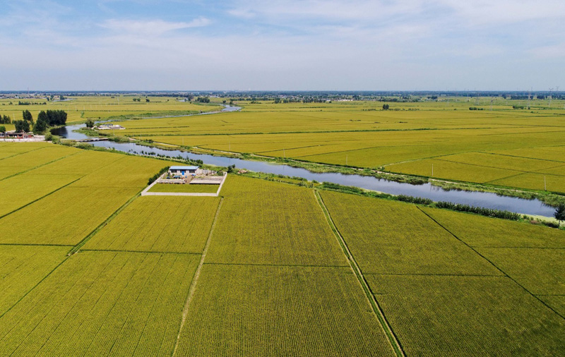 8月21日无人机拍摄的唐山市海港经济开发区王滩镇的稻田。