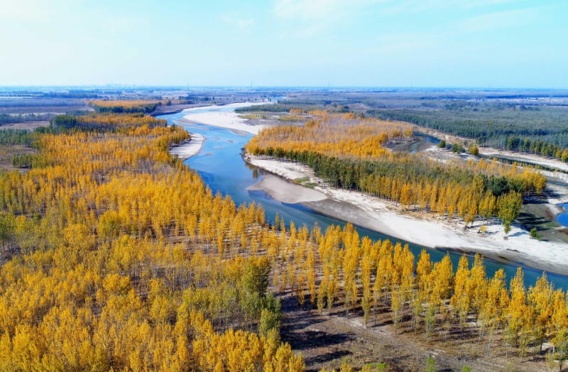 深秋时节,流经河北省乐亭县的滦河两岸色彩斑斓,宛如画境。