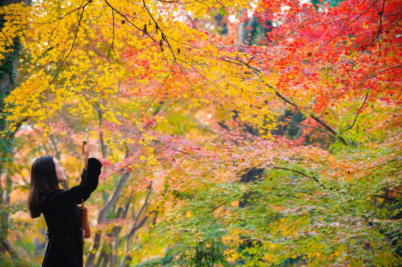 11月24日,游人在南京中山植物园欣赏枫叶。