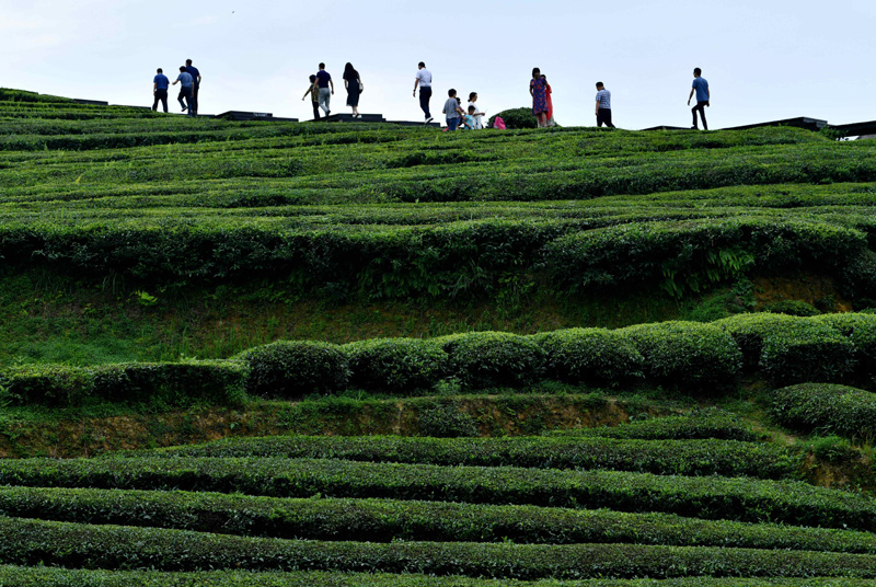 小暑时节,湖北省恩施土家族苗族自治州宣恩县以伍家台村为中心的数万亩茶园里游客络绎不绝。人们到此观光游玩,体验传统茶文化。