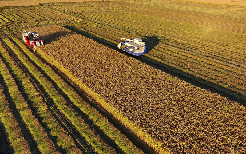 近日,河北省唐山、秦皇岛等地的水稻陆续成熟,农民抢抓农时收割,田间一派繁忙。