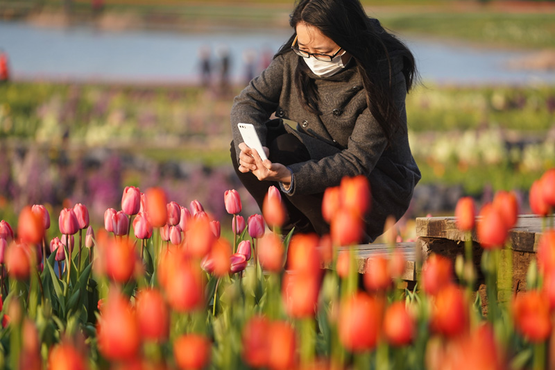 3月14日,游人在南京市江宁区谷里街道徐家院村观赏郁金香。