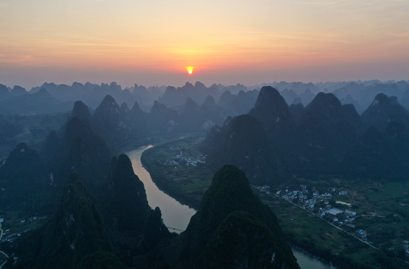 这是在广西桂林市阳朔县兴坪镇拍摄的风光(5月19日摄,无人机照片)。