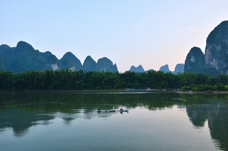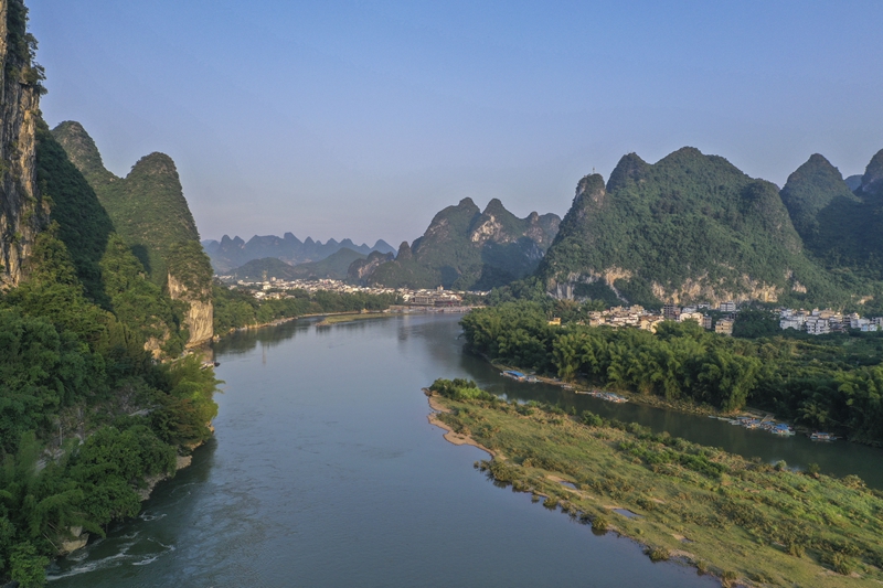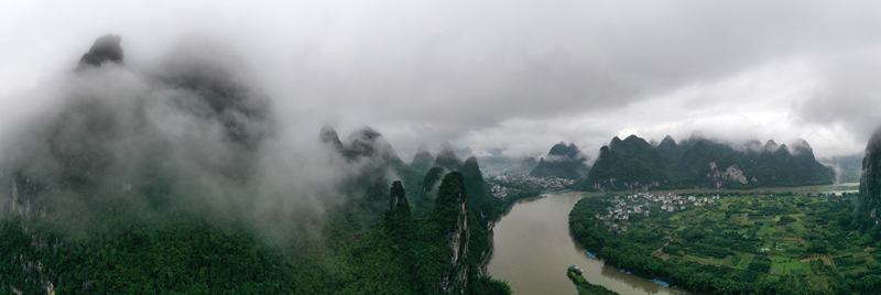 “苍苍森八桂,兹地在湘南。江作青罗带,山如碧玉篸……”一千多年前,唐朝诗人韩愈写尽桂林山水之美。初夏时节,在广西桂林市阳朔县兴坪镇,蓝天白云下,烟雨朦胧中,桂林山水尽显秀美。