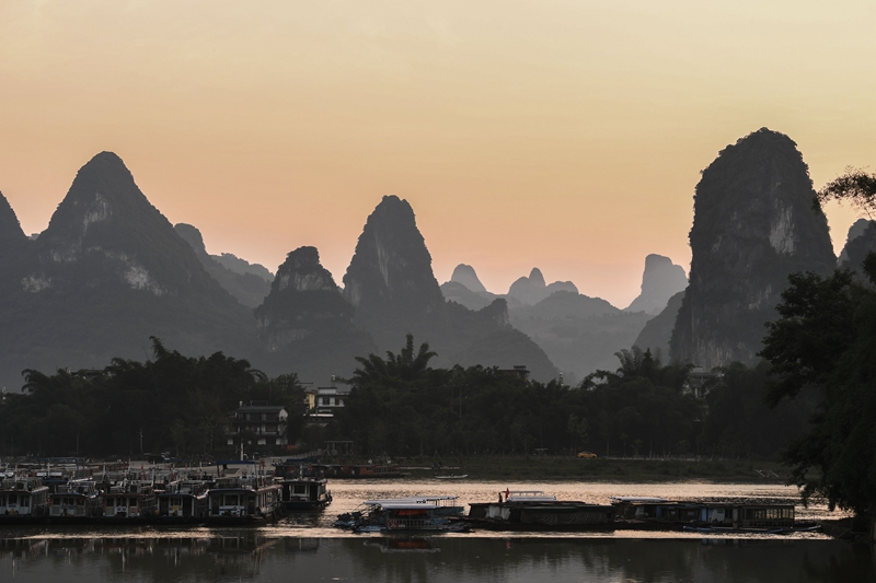 这是在广西桂林市阳朔县兴坪镇拍摄的山水风光(5月19日摄)。
