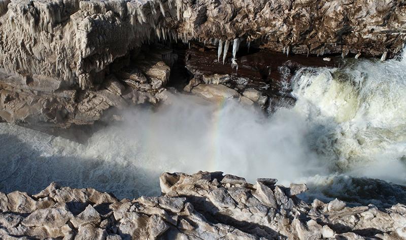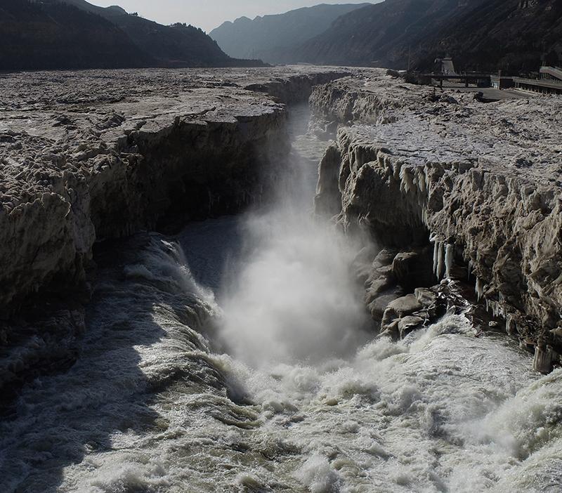 近日,受气温回升影响,黄河壶口段冰消河开,冰封了近一个月的壶口瀑布再现奔腾咆哮的壮美雄姿。