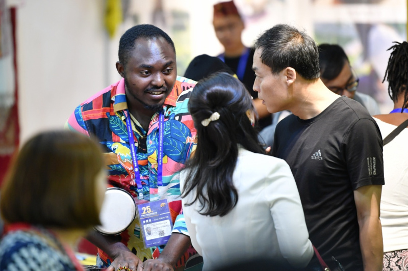 7月4日,一位加纳客商在“兰洽会”上与参会嘉宾交流。