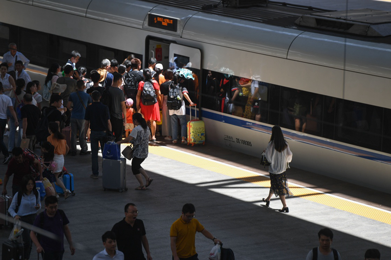 8月27日,旅客在福州火车站上车。
